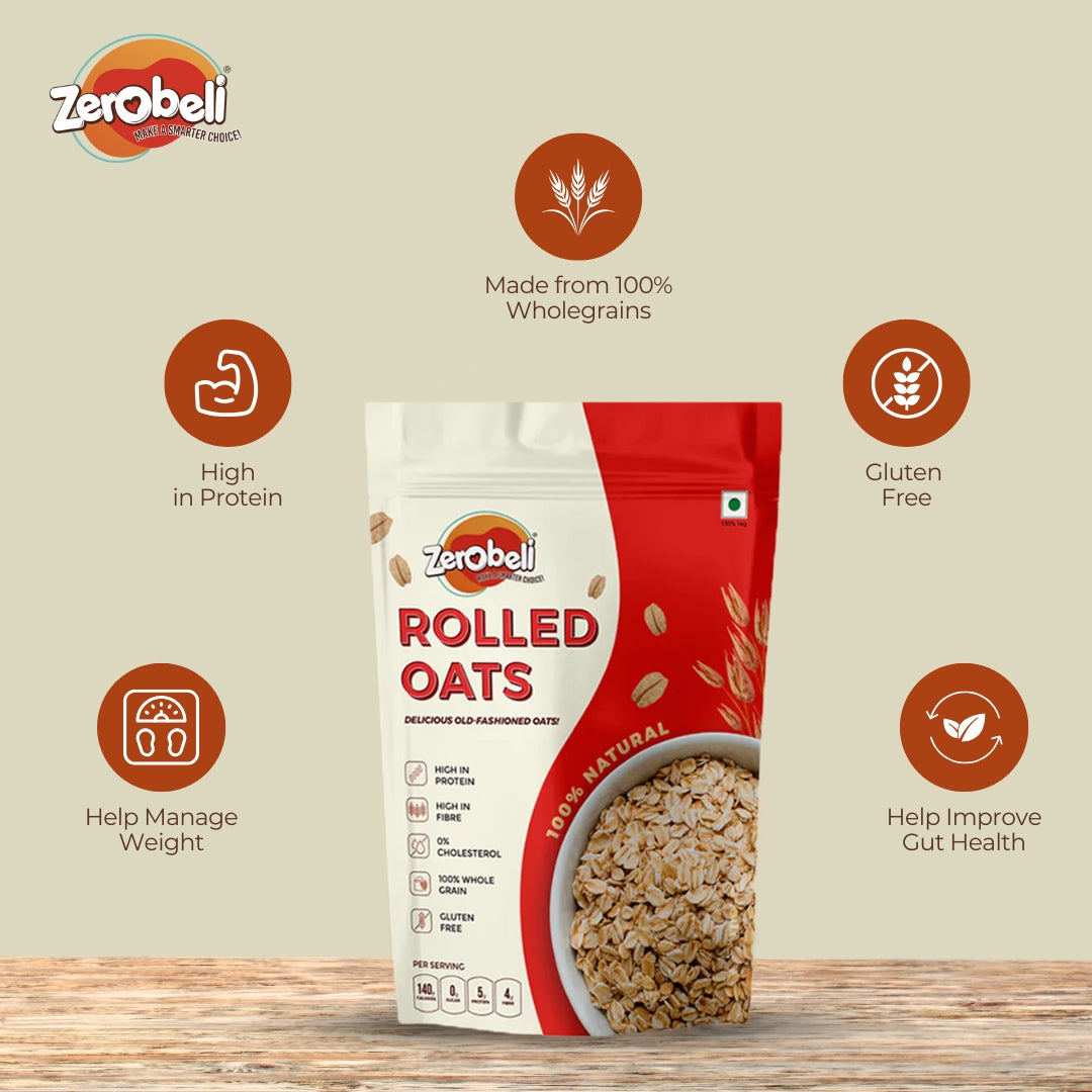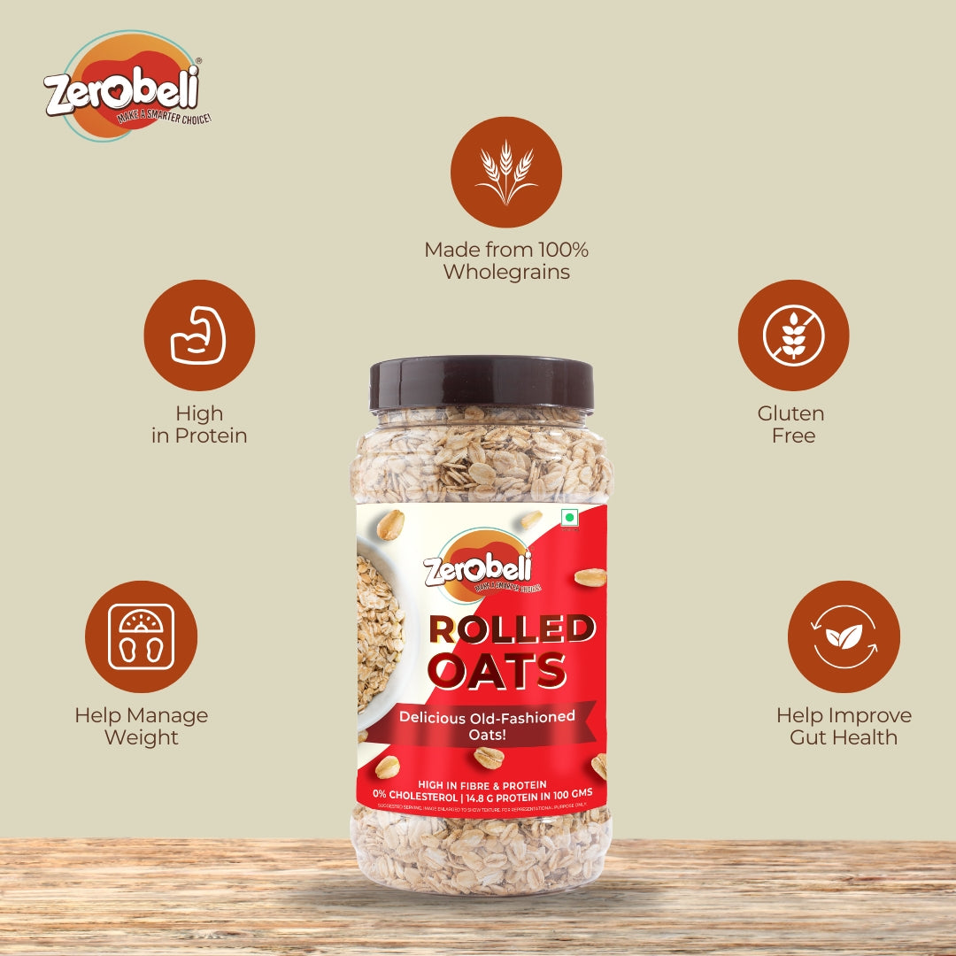 Extensive studies and research have shown that rolled oats have plenty of heart benefits. Oats contain a type of soluble fiber, called beta glucan, which lowers blood glucose and cholesterol levels, thus reducing risk of heart disease and diabetes. Its a host of vitamins and minerals.